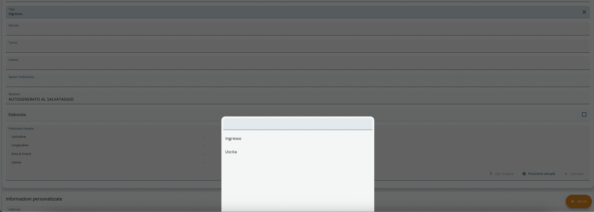 - Tipo di Timbratura (se si tratta di un Ingresso o di una Uscita): obbligatorio;