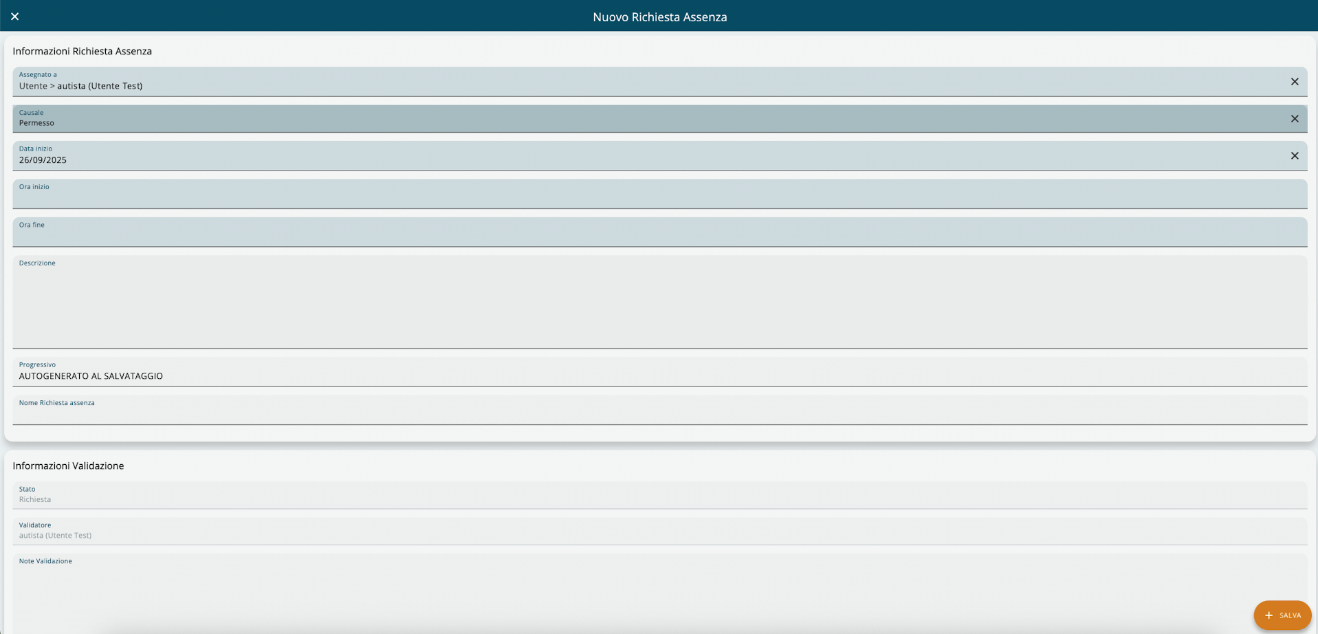 Compilate le date di inizio e fine, in base alla Causale che avete scelto, poi cliccate sul pulsante "Salva", in basso a destra.