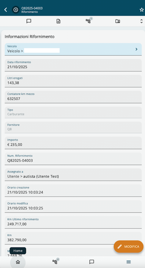 Così si conclude l'inserimento di un Nuovo Rifornimento.